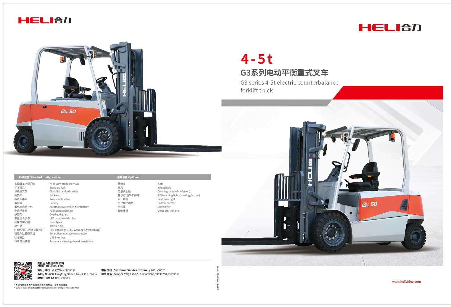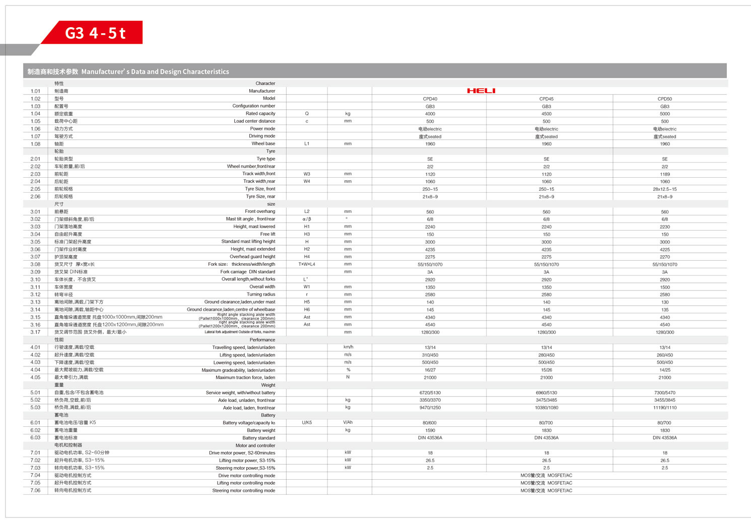 G3系列4-5电动平衡重式叉车